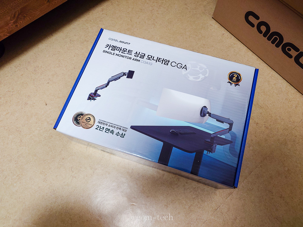 이 제품을 선택한 가장 큰 이유는 최대 20kg까지 지탱할 수 있는 내구성입니다. 49인치 모니터를 사용하는 경우 무게 때문에 모니터암이 버티지 못하는 경우가 많은데, 카멜마운트 제품은 견고하게 고정되면서 흔들림 없이 안정적인 지지를 제공합니다.